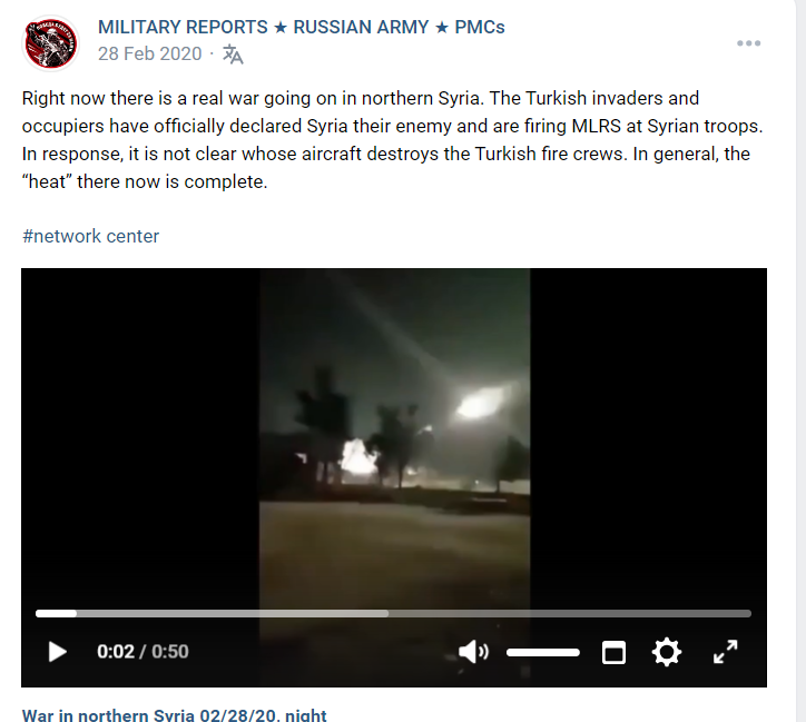 ईरान द्वारा इजराइल किए गए हमले का बताकर वायरल हो रहे इस वीडियो की पड़ताल के लिए हमने वीडियो के एक कीफ्रेम को यांडेक्स सर्च इंजन की मदद से ढूंढा। इस दौरान हमें सोशल मीडिया साइट vk.com द्वारा 28 फरवरी 2020 को पोस्ट किया गया वीडियो मिला। यह वही वीडियो है, जिसे अभी ईरान द्वारा इजराइल पर हुए हमले का बताकर शेयर किया जा रहा है। प्राप्त पोस्ट में बताया गया है कि यह वीडियो उत्तरी सीरिया का है।