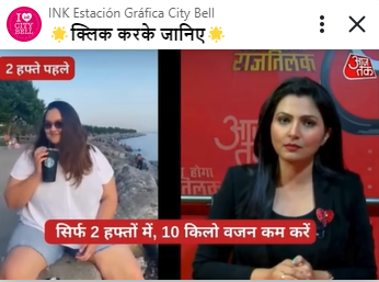 सोशल मीडिया पर एक पोस्ट शेयर कर दावा किया जा रहा है कि एक ख़ास दवाई खाने से 20 हजार लोगों ने 2 हफ़्तों के अंदर 10 किलो तक वजन कम किया है। ये दावा ‘INK Estación Gráfica City Bell’ नामक फेसबुक पेज से किया गया है। 5 दिसंबर, 2023 को साझा किये गए इस वीडियो को दो दिन में दस लाख से ज्यादा बार देखा जा चुका है। हालांकि, वीडियो में किसी दवा का नाम नहीं बताया गया है।