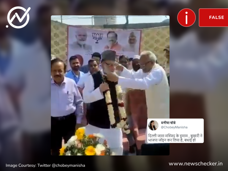 सोशल मीडिया पर एक पोस्ट के जरिए दावा किया जाने लगा कि दिल्ली की जामा मस्जिद के शाही इमाम बीजेपी में शामिल हो गए हैं। हमारी पड़ताल में यह दावा झूठा साबित हुआ। फैक्ट चेक यहां पढ़ा जा सकता है।