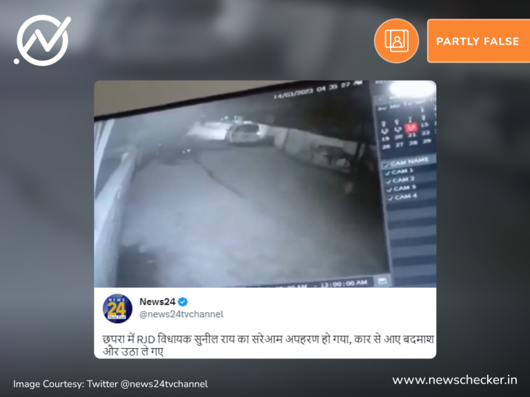 सोशल मीडिया पर एक वीडियो के जरिये दावा किया जाने लगा कि छपरा से आरजेडी विधायक सुनील राय का सरेआम अपहरण हो गया। हमारी पड़ताल में यह दावा भ्रामक साबित हुआ। पूरा फैक्ट चेक यहां पढ़ा जा सकता है।