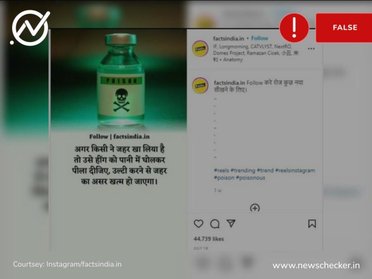 सोशल मीडिया पर एक पोस्ट के जरिए दावा किया जाने लगा कि यदि कोई व्यक्ति जहर खा ले तो उसे हींग का पानी पिलाना चाहिए क्योंकि यह जहर के असर को खत्म कर देता है। हमारी पड़ताल में यह दावा फर्जी साबित हुआ।
