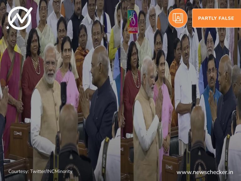 सोशल मीडिया पर एक वीडियो शेयर कर यह दावा किया गया कि प्रधानमंत्री नरेंद्र मोदी द्वारा पूर्व राष्ट्रपति रामनाथ कोविंद के अभिवादन का जवाब ना देकर उनका अपमान किया गया। हमारी पड़ताल में यह दावा भ्रामक साबित हुआ।