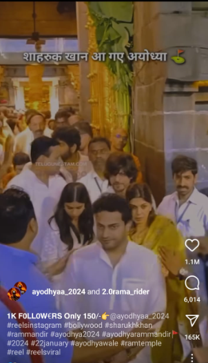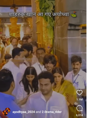 ayodhyaa_2024 नामक इंस्टाग्राम पेज से साझा किये गए एक रील वीडियो में शाहरुख़ खान अपनी बेटी सुहाना खान के साथ एक मंदिर के दर्शन करते हुए नज़ए आ रहे हैं। इस वीडियो के साथ एक राम भजन गीत जोड़कर वीडियो के ऊपर लिखा गया है ‘शाहरुख़ खान आ गए अयोध्या।’ कैप्शन के साथ राम मंदिर और अयोध्या जैसे हैशटैग जोड़े गए हैं।