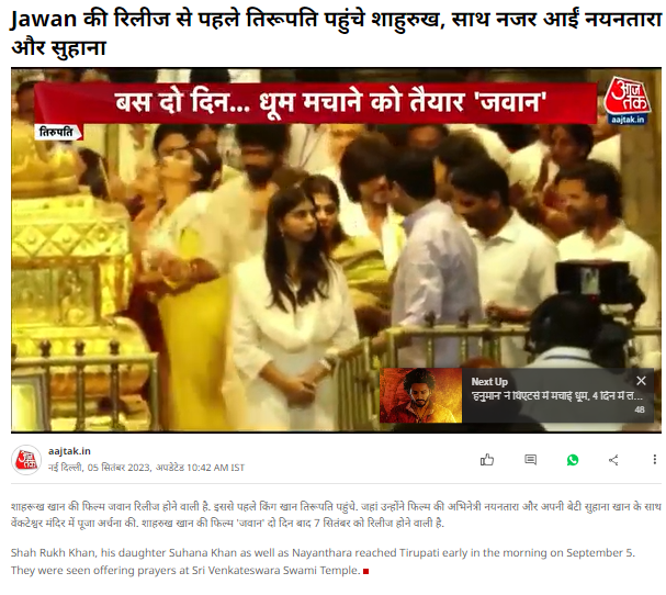 इससे जुड़ी अधिक जानकारी के लिए हमने कुछ कीवर्ड्स को गूगल सर्च किया। हमें समान तस्वीरों के साथ शाहरुख़ खान द्वारा तिरुपति के श्री वेंकटेश्वर मंदिर के दर्शन की पुष्टि करती कई मीडिया रिपोर्ट्स मिलती हैं। रिपोर्ट्स को यहाँ और यहाँ देखा जा सकता है।