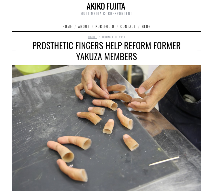 जांच के दौरान हमने ‘Akiko fujita’, ‘Prosthetic fingers’ कीवर्ड्स को गूगल सर्च किया। इस दौरान हमें पत्रकार ‘अकीको फुजिता’ की वेबसाइट पर 16 दिसंबर 2013 को प्रकाशित रिपोर्ट में भी वायरल तस्वीर मिली। रिपोर्ट के शीर्षक में लिखा है कि ‘कृत्रिम उंगलियाँ पूर्व ‘याकूब’ सदस्यों को सुधारने में मदद करती हैं।’