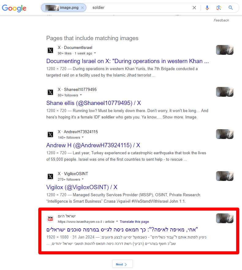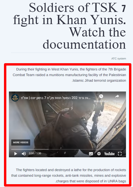 उक्त जानकारी के आधार पर “Activity of the 202nd Battalion operating under the 7th Military Police in Khan Yunis” तथा “לוחמי צוות הקרב של חטיבה 7 נלחמים בחאן יונס // צילום: דובר צה”ל” कीवर्ड्स को गूगल पर ढूंढने पर हमें इसराइल के रक्षा मंत्रालय द्वारा अंग्रेजी तथा हिब्रू भाषाओं में प्रकाशित लेख प्राप्त हुए, जिनमें वीडियो को इसराइली सेना 202वीं बटालियन के जवानों का बताया गया है जो सातवें ब्रिगेड के तहत खान यूनिस शहर में तैनात हैं.