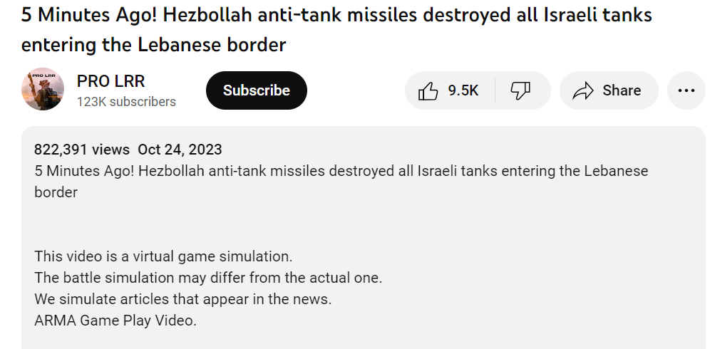 वीडियो के डिस्क्रिप्शन में साफ तौर पर लिखा है कि यह वीडियो एक वर्चुअल गेम सिमुलेशन है। डिस्क्रिप्शन में बताया गया है कि यह वीडियो अरमा गेम प्ले से लिया गया है।