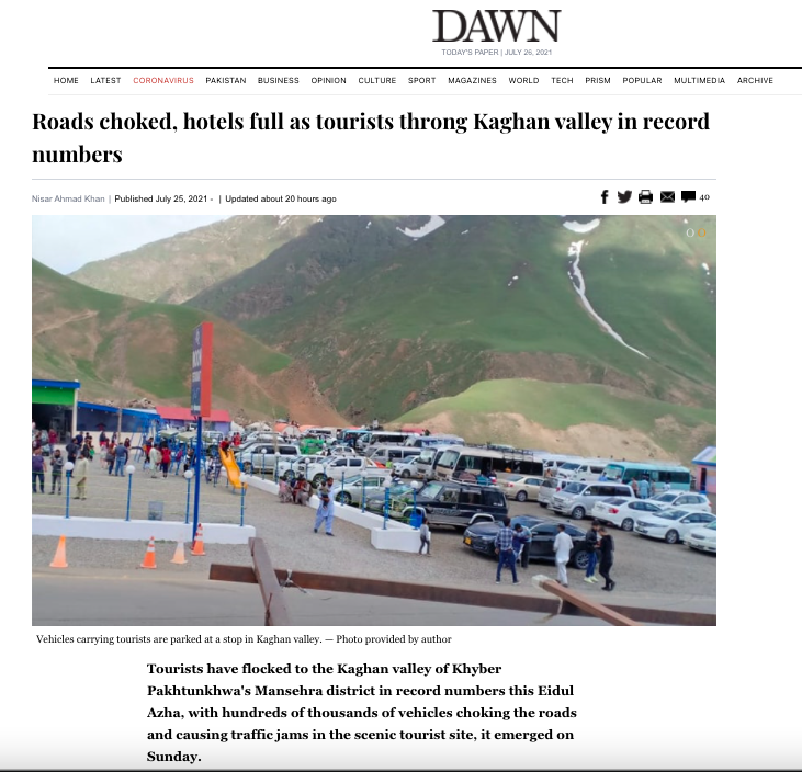 पाकिस्तान के प्रमुख अख़बार Dawn में छपी ख़बर के मुताबिक यह वीडियो खैबर पख्तूनख्वा की कघन घाटी का है। ईद के मौके पर घूमने निकले सैकड़ों सैलानियों के कारण रविवार 25 जुलाई को मनसेहरा-नारन-जलखड सड़क पर लंबा जाम लगा रहा। अख़बार के मुताबिक पिछले 5 दिनों से इस रास्ते का यही हाल देखने को मिल रहा है।