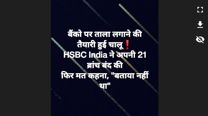सोशल मीडिया तथा मैसेजिंग ऐप्स पर यह दावा किया जा रहा है कि HSBC Bank India ने अपनी 21 शाखाओं को बंद कर दिया है.