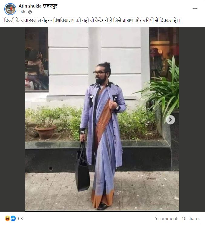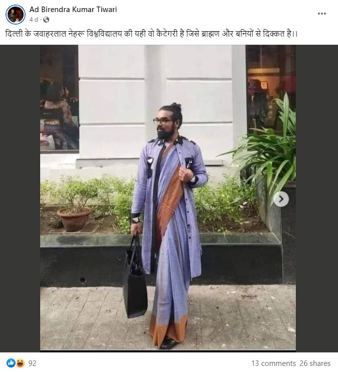 जेएनयू में बीते दिनों जातिसूचक टिप्पणी का मामला सुर्खियों में रहा। इसी बीच एक तस्वीर सोशल मीडिया पर वायरल हो गई। एक व्यक्ति की फोटो शेयर करते हुए दावा किया जा रहा है कि जेएनयू के इन जैसे लोगों को, ब्राह्मण और बनियों से दिक्कत है।