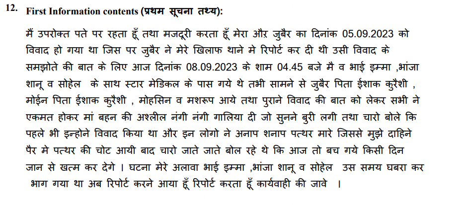 जांच में हमें इस मामले में एक पक्ष के द्वारा की गई एफआईआर भी मिली, जिसमें बताया गया था कि दोनों पक्ष के लोग 8 सितंबर को आपसी विवाद में हुए एक मामले के राजीनामे के लिए इकट्ठा हुए थे. इसी दौरान गाली गलौज और पत्थरबाजी हुई थी.