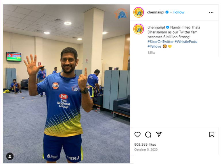 Post by official Instagram account of Chennai Super Kings on 5th October 2020.
