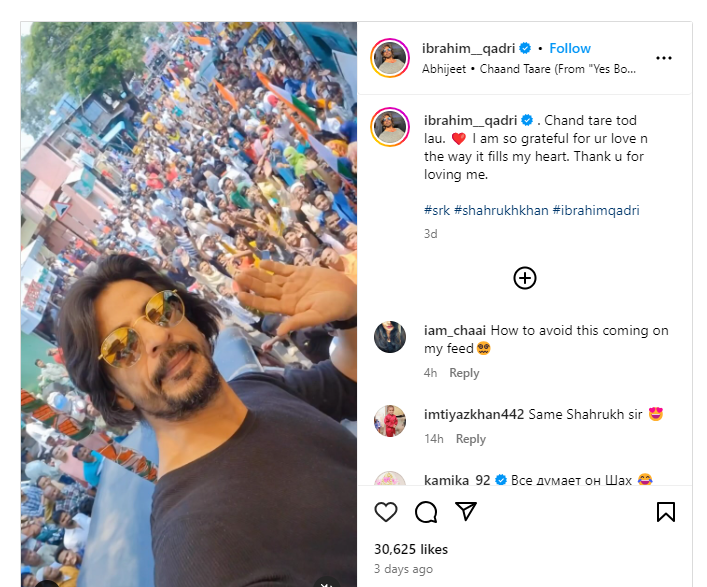 शाहरुख़ खान के हमशक्ल इब्राहिम क़ादरी ने अपने आधिकारिक सोशल मीडिया हैंडल्स से भी रैली के दौरान का वीडियो शेयर किया है। वीडियो में देखा जा सकता है कि उनके कपड़े, चश्मा और चुनाव प्रचार वाली गाड़ी और कांग्रेस के झंडे वायरल वीडियो के समान ही हैं।
