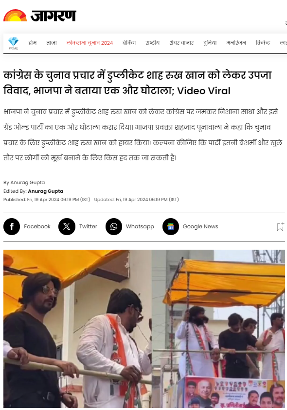 फिल्म अभिनेता शाहरुख खान लोकसभा चुनाव में कांग्रेस पार्टी के लिए प्रचार कर रहे हैं। एक्स पोस्ट का आर्काइव यहां देखें।