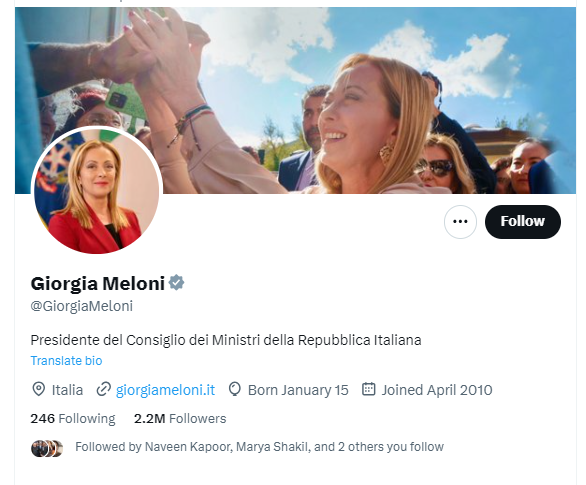 ’Newschecker ने वायरल कथित ट्वीट के पड़ताल के लिए सबसे पहले इटली की प्रधानमंत्री जियोर्जिया मेलोनी के आधिकारिक ट्विटर अकाउंट को खंगाला.