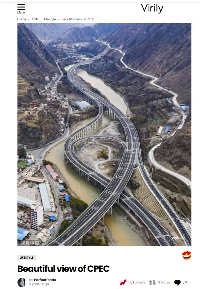 तस्वीर के साथ दी गई जानकारी के मुताबिक, यह चीन-पाकिस्तान कॉरिडोर के तहत बन रहे सीपीईसी प्रोजेक्ट की तस्वीर है।