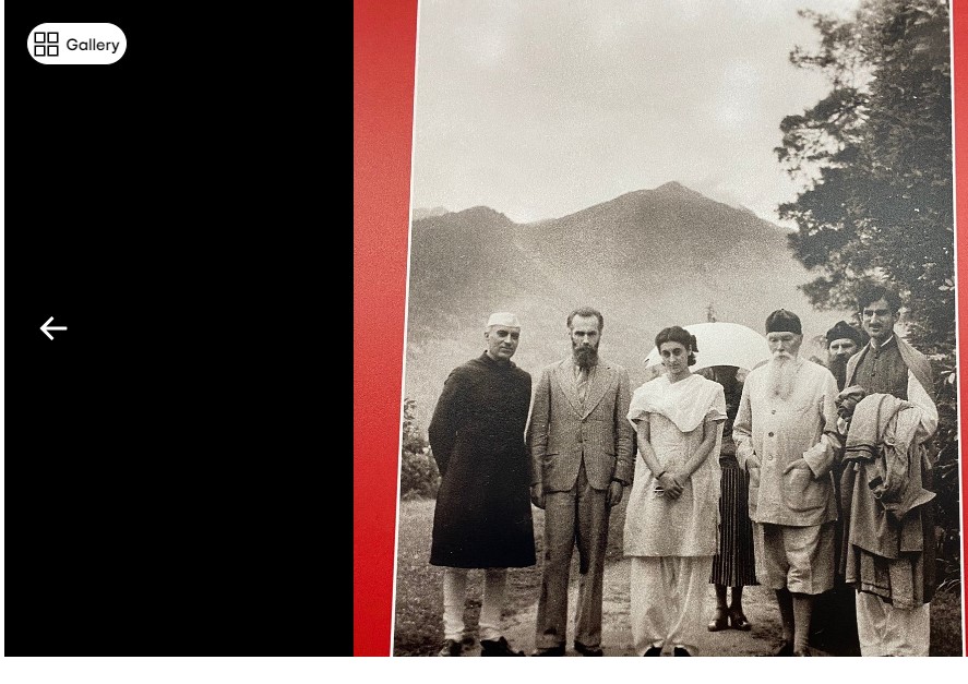 तस्वीर के साथ कैप्शन में उन दोनों व्यक्तियों को क्रमशः निकोलस रोरिक और मोहम्मद यूनुस बताया गया है. साथ ही यह भी बताया गया है कि यह तस्वीर इंदिरा गांधी की शादी के बाद अप्रैल-मई 1942 में कुल्लू-मनाली में खींची गई थी.
