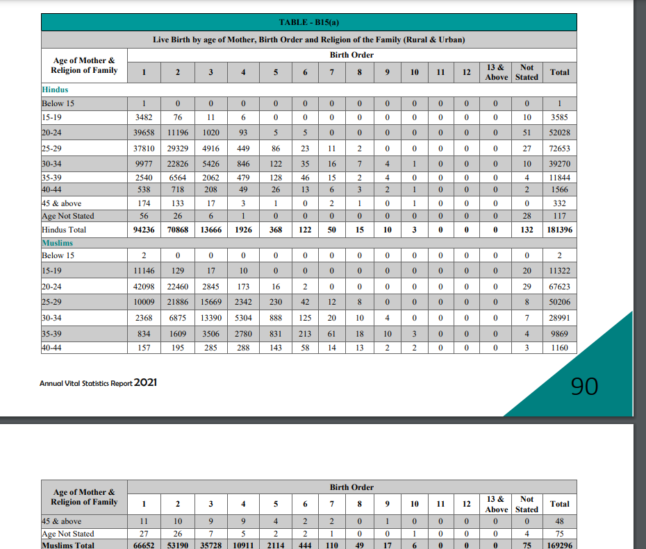 इसके अलावा, बच्चों की माता के धर्म के आधार भी नवजात बच्चों का वर्गीकरण किया गया था. रिपोर्ट में पेज नंबर 90 से 94 पर दिए गए आंकड़ों के अनुसार, साल 2021 में 181396 बच्चों का जन्म हिंदू परिवार, 169296 मुस्लिम परिवार, 59766 बच्चों का जन्म ईसाई परिवार में हुआ. इसके अलावा, 9143 बच्चों का जन्म अन्य धर्मों में, वहीं 166 बच्चों के परिवार के धर्म की जानकारी नहीं दी गई है.