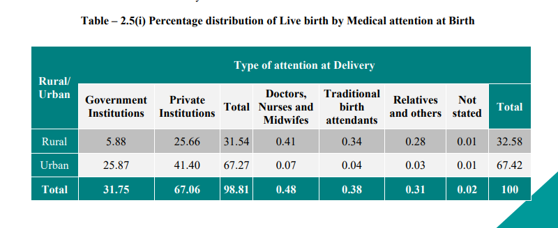 एक आंकड़े में यह भी बताया गया है कि केरल में जन्में कुल बच्चों में करीब 31.75% बच्चों ने सरकारी अस्पताल में जन्म लिया, जिनमें 25.87% हिस्सेदारी शहरी इलाकों की थी, वहीं 5.88% ग्रामीणों इलाकों की थी.