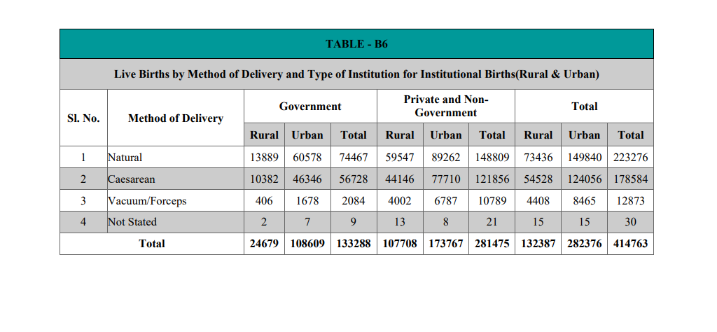 रिपोर्ट में मौजूद टेबल-B6 के आंकड़ों के अनुसार, केरल के सरकारी अस्पतालों में कुल 133288 बच्चों का जन्म हुआ था.
