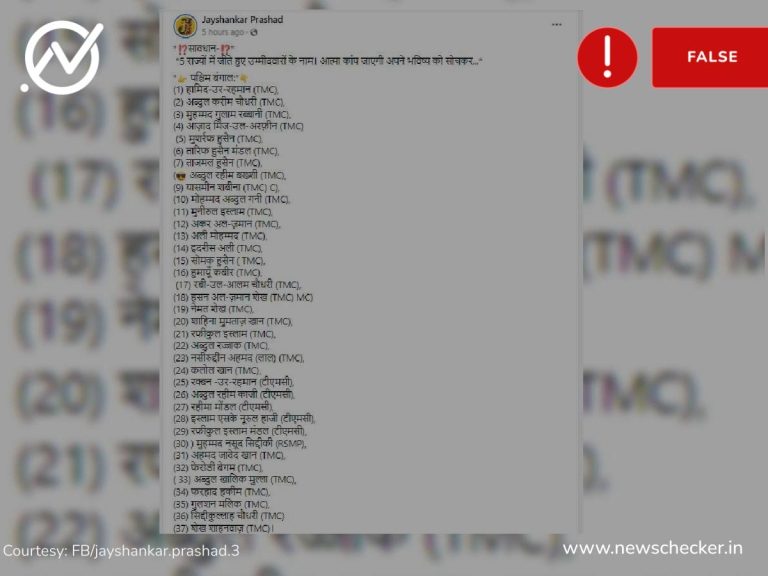 सोशल मीडिया पर एक पोस्ट शेयर कर दावा किया गया कि लोकसभा चुनाव 2024 में 98 मुस्लिम प्रत्याशी सांसद बने हैं। हमारी पड़ताल में यह दावा फर्जी साबित हुआ। फैक्ट चेक यहां पढ़ें।