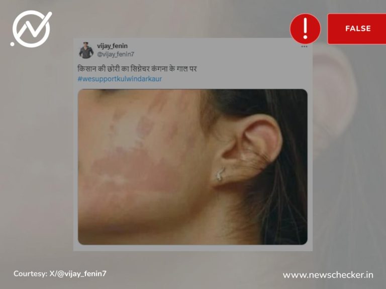 चंडीगढ़ एयरपोर्ट पर तैनात महिला सुरक्षाकर्मी द्वारा कंगना रनौत के साथ किए गए दुर्व्यवहार के बाद एक तस्वीर वायरल होने लगी। दावा किया गया कि यह कंगना रनौत के गाल पर पड़े थप्पड़ के निशान की तस्वीर है। हमारी जांच में यह दावा फर्जी निकला। फैक्ट चेक यहां पढ़ें।