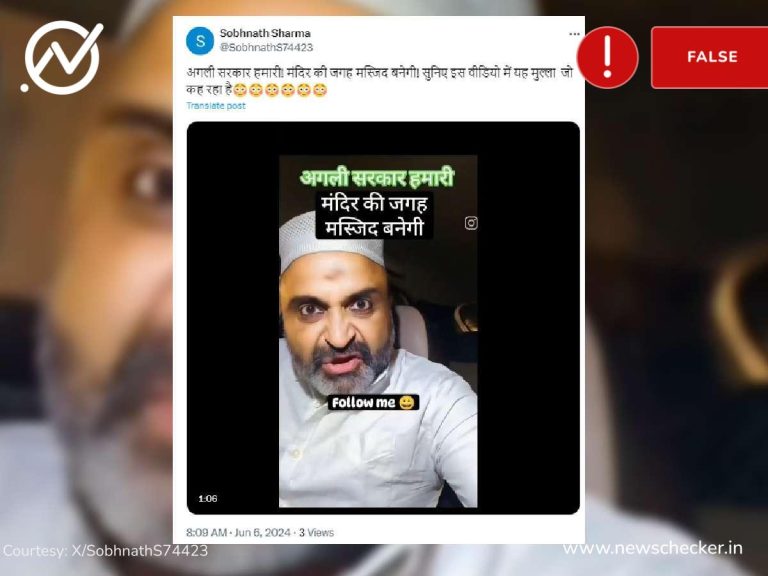 सोशल मीडिया यूजर्स ने दावा किया कि अयोध्या में राम मंदिर की जगह मस्जिद बनाने की बात करता वीडियो में दिख रहा यह व्यक्ति मुस्लिम है। हमारी पड़ताल में ये दावा फर्जी साबित हुआ। फैक्ट चेक यहां पढ़ें।