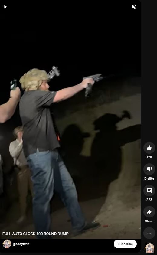 दावे की सत्यता जानने के लिए हमने वायरल वीडियो के कुछ कीफ्रेम बनाए। इसके बाद एक फ्रेम को रिवर्स सर्च किया। हमें यूट्यूब पर 12 दिन पहले अपलोड किया गया एक वीडियो मिला। इसमें वायरल वीडियो के दृश्य मौजूद हैं। वीडियो के टाइटल में लिखा है, “FULL AUTO GLOCK 100 ROUND DUMP”।