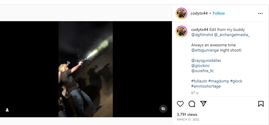पड़ताल के दौरान हमने ‘codytx44’ को गूगल सर्च किया। हमें इस नाम से एक इंस्टाग्राम पेज भी मिला। इसमें 31 मार्च 2022 को एक वीडियो पोस्ट किया गया है, जिसमें वायरल वीडियो के अंश देखे जा सकते हैं। वीडियो को अमेरिका के टेक्सास में मौजूद एक शूटिंग प्रैक्टिस करने की जगह को टैग किया गया है। इनके अकाउंट पर टेक्सास जगह को टैग करके कई वीडियो मौजूद हैं।