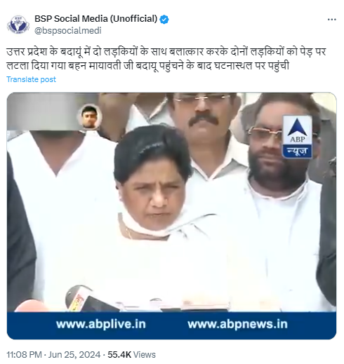 हालांकि, हमने अपनी जांच में पाया कि यह वीडियो करीब 10 वर्ष पुराना है, जब साल 2014 में बदायूं में दो लड़कियों के साथ हुए गैंगरेप के बाद हत्या के मामले में मायावती पीड़ित परिवार से मिलने पहुंची थी.
