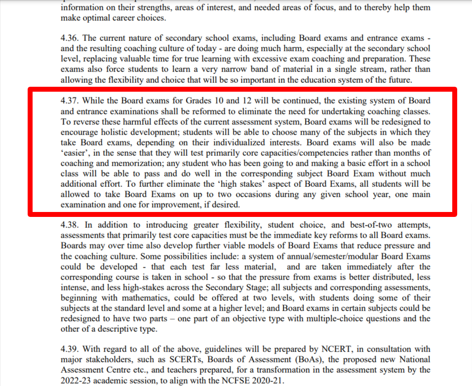 PIB Fact Check ने अपने ट्वीट में National Education Policy 2020 का लिंक भी शेयर किया है, जिसमें यह साफ तौर पर कहा गया है कि दसवीं तथा बारहवीं की बोर्ड परीक्षाओं को खत्म नहीं किया जायेगा.