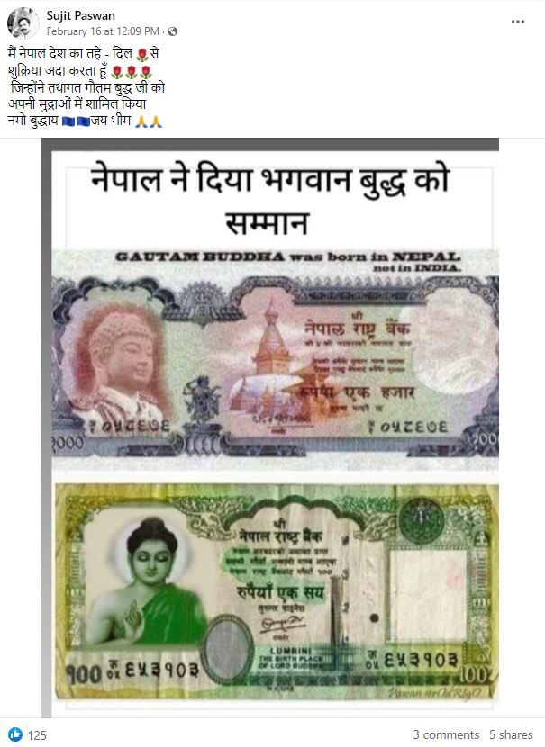 सोशल मीडिया पर एक पोस्ट शेयर कर दावा किया जा रहा है कि नेपाल ने भगवान बुद्ध को सम्मान देने के लिए अपनी करेंसी पर उनकी फोटो का इस्तेमाल किया है। इस पोस्ट के जरिए यूजर्स नेपाल देश का तहे दिल से धन्यवाद कर रहे हैं।