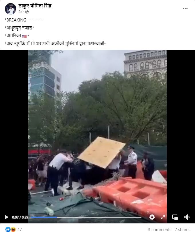 सोशल मीडिया पर एक वीडियो शेयर कर दावा किया जा रहा है कि अमेरिका के न्यूयॉर्क में मुस्लिम शरणार्थियों द्वारा पत्थरबाजी की जा रही है।