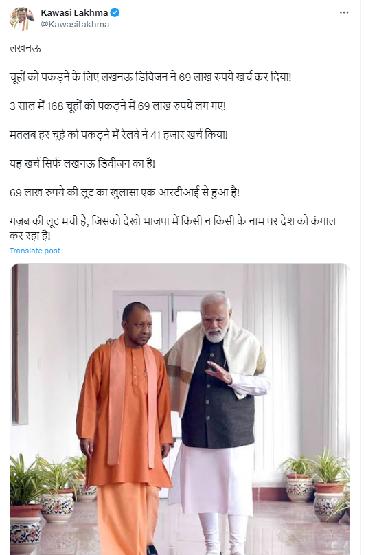 सोशल मीडिया सहित देश के कई मीडिया संस्थानों ने एक खबर प्रकाशित करते हुए दावा किया कि रेलवे के लखनऊ मंडल ने 168 चूहों को पकड़ने के लिए कुल 69 लाख रुपए खर्च कर दिए। दावे के मुताबिक, एक चूहे को पकड़ने के लिए रेलवे ने 41 हजार रुपए खर्च किये। वायरल दावे की पड़ताल करने पर हमें PIB फैक्ट चेक के एक्स (ट्विटर) हैंडल द्वारा 17 सितंबर को किया गया एक ट्वीट मिला। इस पोस्ट में वायरल दावे को भ्रामक बताते हुए कहा गया है कि चूहों को पकड़ने के लिए जिस लागत की बात की जा रही है वह भ्रामक है। असल में कोच के पेस्ट कंट्रोल के लिए प्रति वर्ष औसतन 25 हजार रुपये खर्च आने की बात कही गई है।