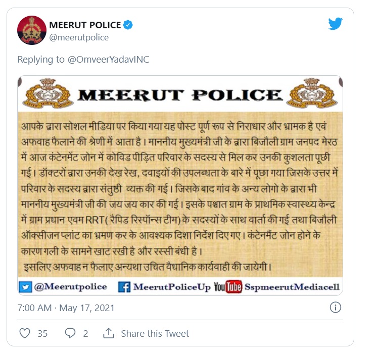 Twitter –https://twitter.com/meerutpolice/status/1394103106267344903