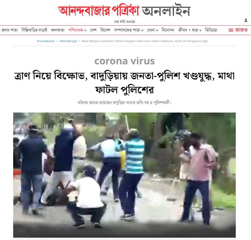 22 अप्रैल 2022 क़ो ही बंगाली समाचार चैनल एबीपी आनंद द्वारा इस घटना के वीडियो के साथ प्रकाशित रिपोर्ट में भी यही जानकारी दी गयी है। 22 अप्रैल, 2020 को बदुरिया नगर पालिका के वार्ड नंबर 9 के तारागुनिया इलाके में स्थानीय निवासियों के एक समूह ने कोविड लॉकडाउन के दौरान राशन के अनुचित वितरण का आरोप लगाते हुए खोलापोटा-बदुरिया सड़क को अवरुद्ध कर दिया था। स्थानीय निवासियों के अनुसार, जब बदुरिया थाने की पुलिस सड़क की नाकाबंदी हटाने के लिए पहुंची, तो उन्होंने कथित तौर पर प्रदर्शनकारियों पर हमला किया और उन्हें अंधाधुंध पीटना शुरू कर दिया। यह वीडियो उसी समय का है, जब पुलिस वहां की नाकाबंदी हटाने के लिए पहुंची थी।