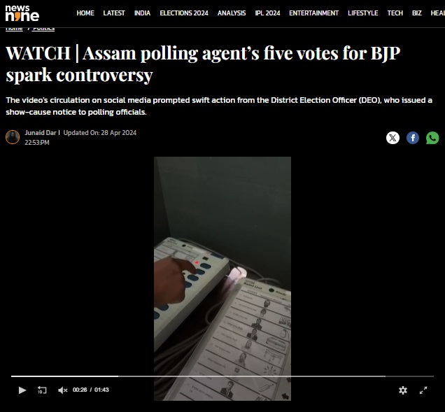 न्यूज़चेकर ने सबसे पहले ”मतदान में धोखाधड़ी”, “एक ही व्यक्ति द्वारा भाजपा उम्मीदवार को 5 वोट” कीवर्ड्स को गूगल सर्च किया। परिणाम में हमें 28 अप्रैल, 2024 को न्यूज़9 द्वारा प्रकाशित रिपोर्ट मिली। रिपोर्ट में बताया गया है कि यह वीडियो असम के करीमगंज का है, जहां मॉक पोल के दौरान वीडियो को शूट किया गया था। इस घटना के बाद जिला निर्वाचन अधिकारी (डीईओ) की तरफ से मतदान अधिकारियों को कारण बताओ नोटिस जारी किया गया था।