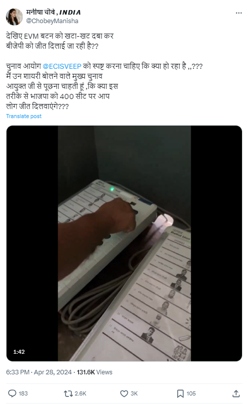 भारत के चुनाव आयोग ने भी 29 अप्रैल, 2024 को एक ट्वीट में वायरल वीडियो को खारिज किया है और आरोपों को “झूठा और भ्रामक” बताया है।