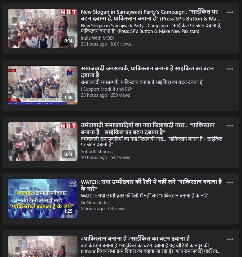 इसके अलावा हमें मनीन्द्र शुक्ला के फेसबुक पेज पर राज्य चुनाव आयोग द्वारा नियुक्त बिठूर के सहायक रिटर्निंग ऑफिसर का एक वीडियो स्टेटमेंट भी मिला। वीडियो में अधिकारी ने स्पष्ट किया कि रैली में पाकिस्तान बनाना है जैसा कोई नारा नहीं लगा।