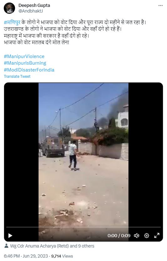Fact Check: फिलिस्तीन में हुई आगजनी और पत्थरबाजी का वीडियो मणिपुर का बताकर भ्रामक दावे के साथ वायरल