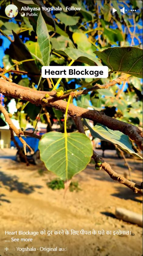 पीपल के पत्ते से हॉर्ट ब्लॉकेज की समस्या खत्म करने का दावा भ्रामक है।
