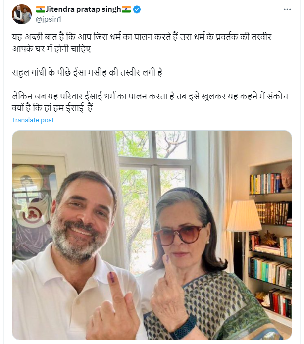 राहुल गाँधी और सोनिया गांधी के पीछे दिख रही तस्वीर ईसा मसीह की है।