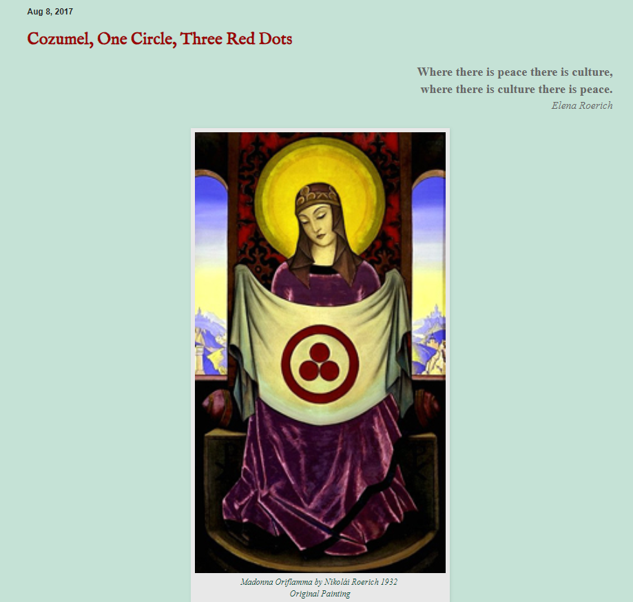 ब्लॉग में बताया गया है कि पेंटिंग में नज़र आ रही महिला शांति के प्रतीक वाले ध्वज को पकड़े हुए है। यह विश्व शांति ध्वज रूसी कलाकार ‘निकोलाई रोएरिच’ द्वारा ही डिजाइन किया गया था।
