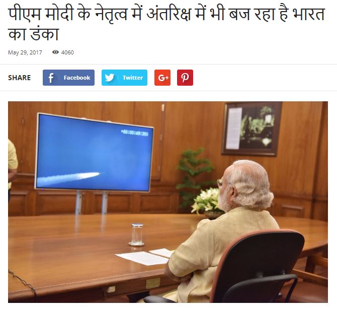 पड़ताल के दौरान हमें पीएम नरेंद्र मोदी की ऑफिसियल वेबसाइट पर 28 अप्रैल, 2016 को प्रकाशित एक लेख में भी यह तस्वीर मिली। इसमें दी गई जानकारी के अनुसार, पीएम मोदी आईआरएनएसएस-1जी (भारतीय क्षेत्रीय नेविगेशन सैटेलाइट सिस्टम) की लांचिग का सीधा प्रसारण देख रहे थे।