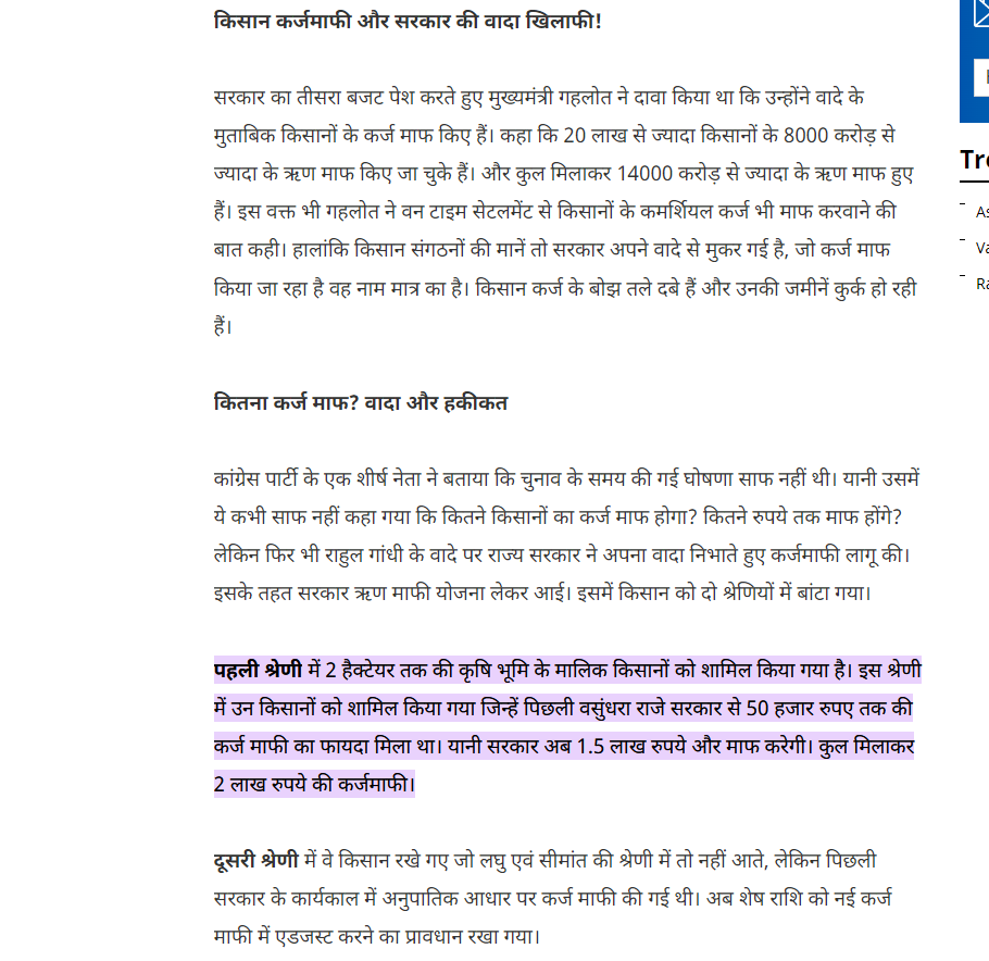 राजस्थान की गहलोत सरकार द्वारा किसानों को 2 लाख रुपये तक की कर्जमाफी की सौगात देने के नाम पर शेयर किये जा रहे इस दावे की पड़ताल के लिए, हमने ‘राजस्थान में किसानों को कर्जमाफी की सौगात’ कीवर्ड्स को गूगल पर ढूंढा.