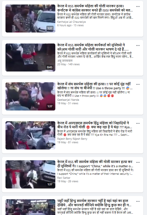 इसी क्रम में सोशल मीडिया यूजर्स एक वीडियो शेयर कर यह दावा कर रहे हैं कि केरल में RSS समर्थक महिला की गोली मारकर हत्या कर दी गई.