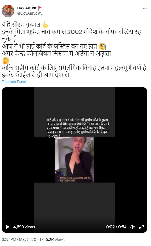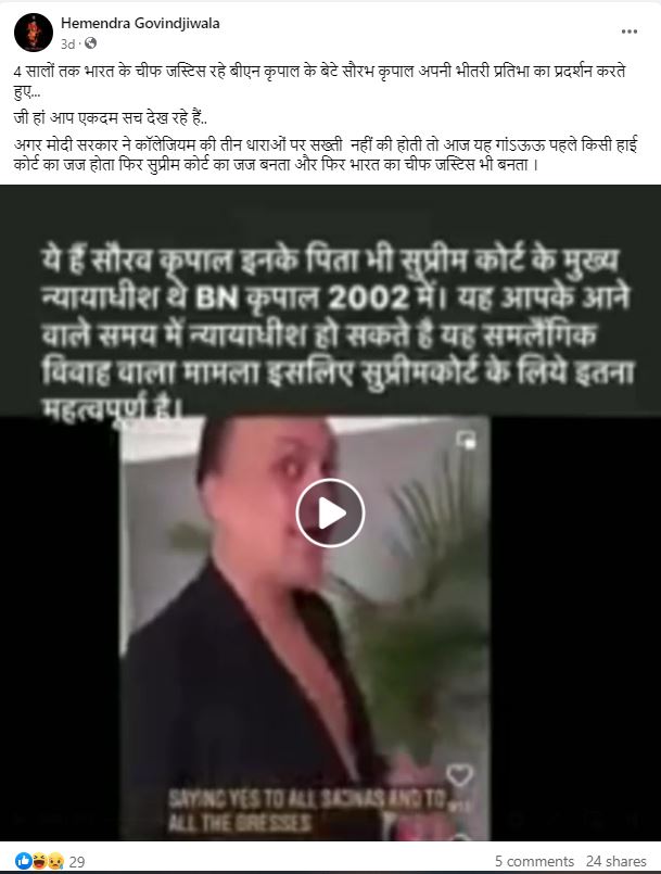 दावा भ्रामक है। यह वीडियो सौरभ कृपाल का नहीं है।