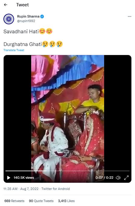सोशल मीडिया पर शादी के मंडप का एक वीडियो काफी वायरल है। वीडियो में एक दुल्हा-दुल्हन बैठे नज़र आ रहे हैं और इसी बीच एक व्यक्ति अचानक से दुल्हन के पीछे आता है और उसके माथे पर सिन्दूर लगाने लगता है। इसके बाद वह व्यक्ति दुल्हन को अपने साथ ले जाने लगता है। कई लोग इस वीडियो को सच मानकर शेयर कर रहे हैं। इसके अलावा, Zee News और AsiaNet News जैसे कई मीडिया पोर्टल्स ने भी इस वीडियो को शेयर किया है।