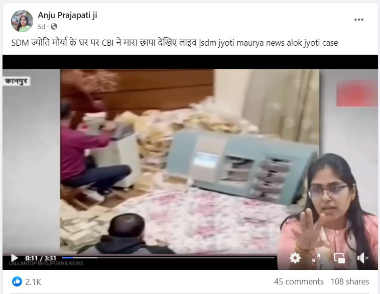 सोशल मीडिया पर एक वीडियो शेयर कर दावा किया जा रहा है कि एसडीएम ज्योति मौर्या के घर पर CBI ने छापा मारा है।