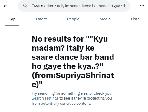 सुप्रिया श्रीनेत के आर्काइवड एक्स पोस्ट में भी ऐसा कोई पोस्ट नजर नहीं आया।